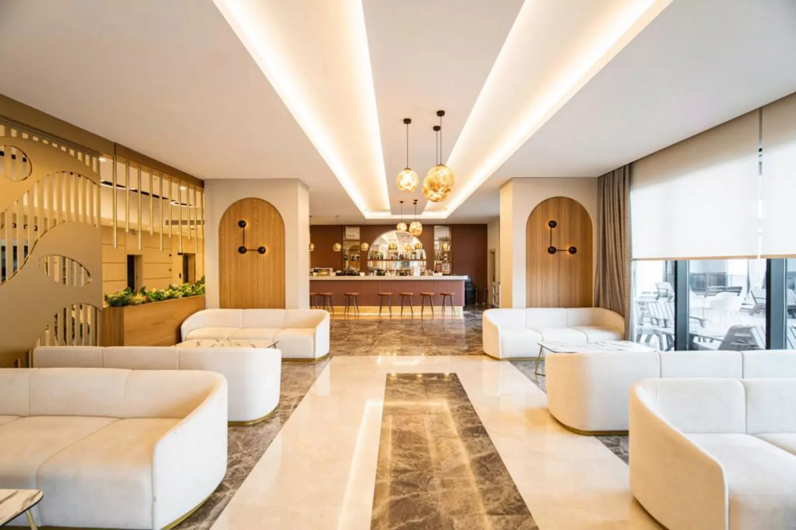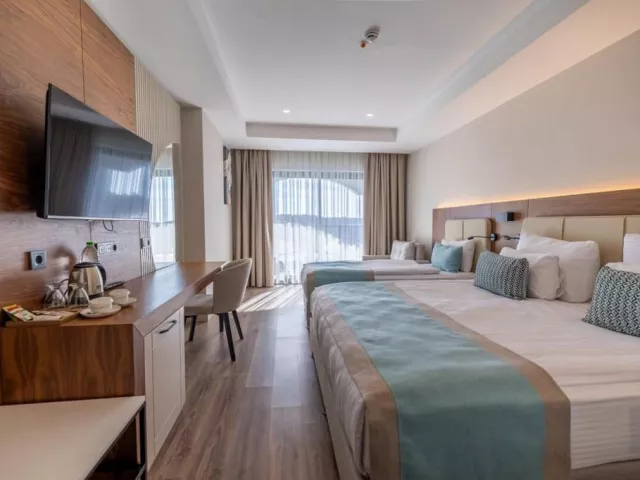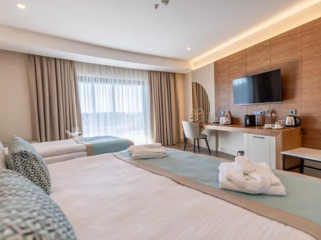 Pláž je umiestnená 900 m od hotela a ponúka pieskovo-kamienkový povrch. K dispozícii sú slnečníky, ležadlá a plážové osušky zdarma. Pre pohodlie hostí je zabezpečený aj shuttle bus na pláž zdarma.