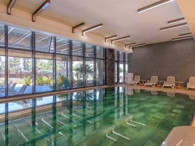 Komplex zahŕňa vstupnú halu s recepciou, hlavnú reštauráciu a 2 á la carte reštaurácie (tureckú a rybiu), lobby bar, 24-hodinový snack bar, disco a karaoke bar, pool bar, beach bar a beach snack bar s bohatou ponukou občerstvenia. K dispozícii sú vonkajšie relaxačné bazény, bazén s toboganmi a vnútorný bazén. Pre aktívne vyžitie sú k dispozícii SPA a wellness centrum, fitness centrum, rôzne športové aktivity, požičovňa bicyklov a vodné športy (za poplatok). Nechýbajú ani medzinárodné hotelové animácie a večerný program.