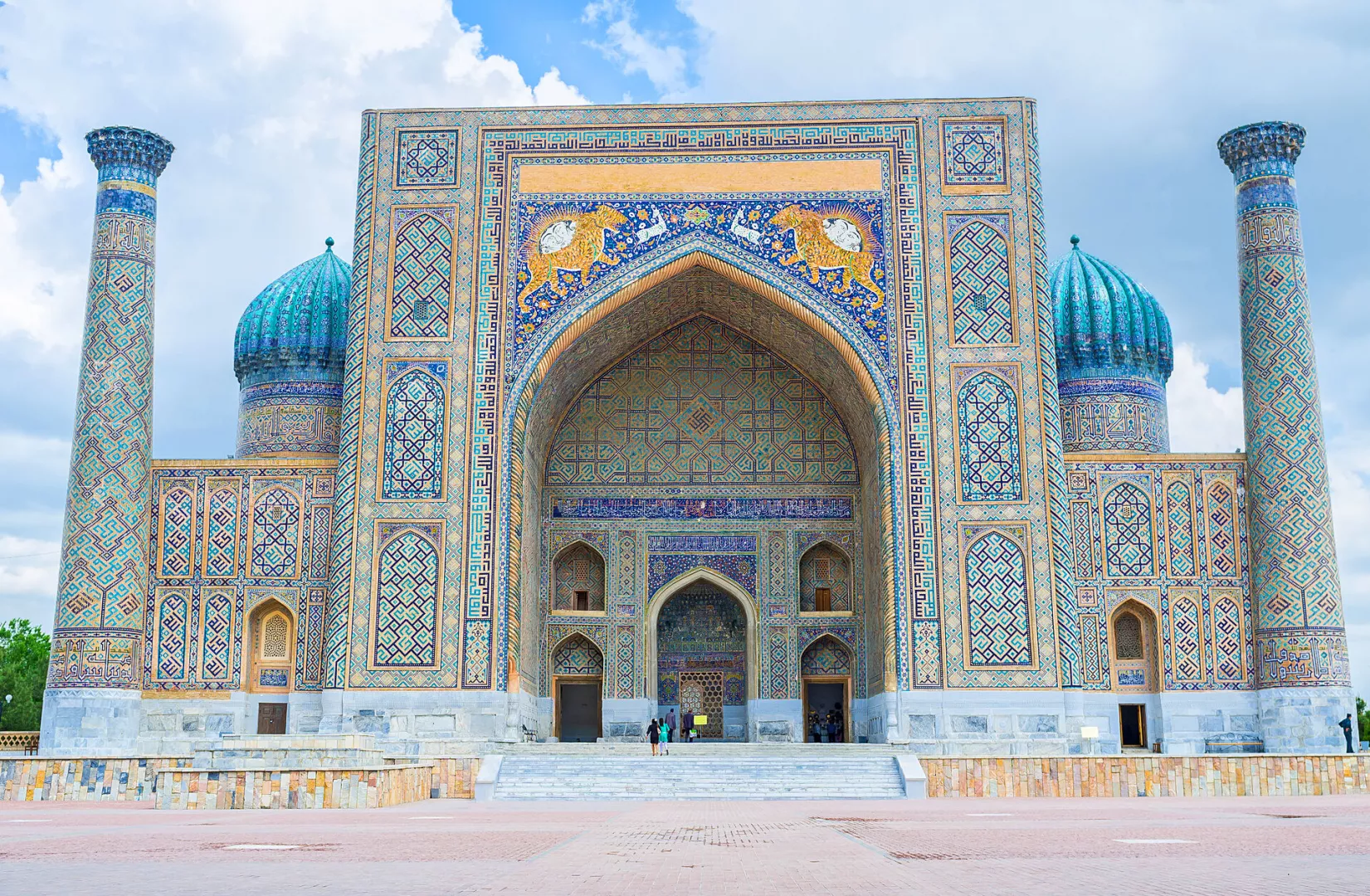 SAMARKAND-SHAH I ZINDA-REGISTAN-BIBI KHANUM Celý deň sa venujeme Samarkandu. Prejdeme sa ulicami mesta mŕtvych Shah-i-Zinda . Svätý, ktorý tu odpočíva, vraj nikdy nezomrel a dodnes čaká na dne studne na svoj návrat na zem. Budeme zjednávať ceny na slávnom trhu Siab Bozori. Na tomto mieste, v tieni obrovskej mešity Bibi Khanum , predávali svoj tovar karavány už pred 500 rokmi a dnes si tu môžeme nakúpiť aj my. Detailne prejdeme všetky budovy na námestí Registan – Ulugbegovu medresu (islamskú univerzitu) posiatu ozdobnými hviezdami, zlatú medresu Tillyakori, ale aj netypickú Sherdar medresu , hrdiacu sa obrázkami tigrov. Samarkand sa Vám vryje do pamäti!