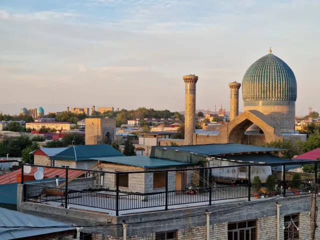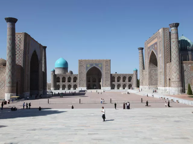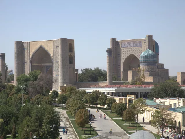 TAŠKENT-SAMARKAND-GUR I EMIR Ráno nasadneme na miestny rýchlovlak a rýchlosťou 200 kilometrov za hodinu sa rútime naprieč krajinou. Uzbekistan systematicky buduje svoje železničné siete a na tejto ceste ich využijeme niekoľkokrát. Budete prekvapení, aké kvalitné sú vlaky v tejto post-sovietskej krajine. Po necelých dvoch hodinách cesty prichádzame do najznámejšieho mesta Uzbekistanu, Samarkandu . Poobede nás prvýkrát ohúri výhľad na ikonické námestie Registan. Prejdeme sa ulicami a pokocháme sa nádherným komplexom Gur-i-Emir. Jeho mohutná kupola a minarety sú jedným z najvplyvnejších prvkov miestnej architektúry. Historici dokonca odhadujú, že práve táto stavba ovplyvnila napríklad aj novodobý div sveta, Taj Mahal.