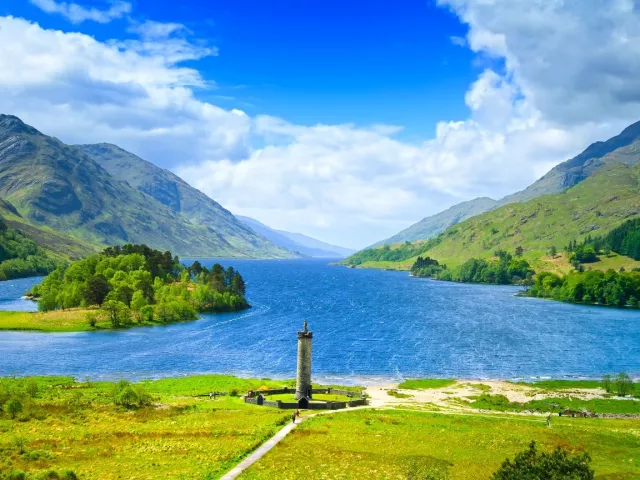 HRAD STIRLING - DEDINKA LUSS - ÚDOLIE GLENCOE Pozrieme si Falkirk Wheel , prvý unikátny otáčavý lodný výťah na svete. Spája prieplavy Union a Fort & Clyde tak, aby zabezpečil plynulý prechod medzi Glasgowom a Edinburgom. Návšteva stredovekého mesta a ohromujúceho hradu Stirling , ktorý podľa legendy vytrhol z rúk kráľ Artuš Anglosasom. Cestou na sever sa na brehu najväčšieho škótskeho jazera Loch Lomond zastavíme v rozprávkovej dedinke Luss . Prejazd cez tajuplné močariská Rannoch Moor a horské zelené údolie Glencoe (písali sa tu veľké dejiny Škótska, keď tu v r. 1692 došlo k masakru členov klanu MacDonaldovcov), pomedzi horské masívy, okolo hlbokých kaňonov.
