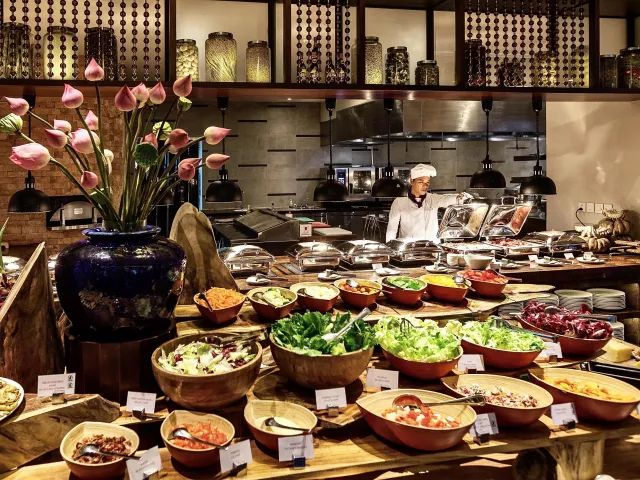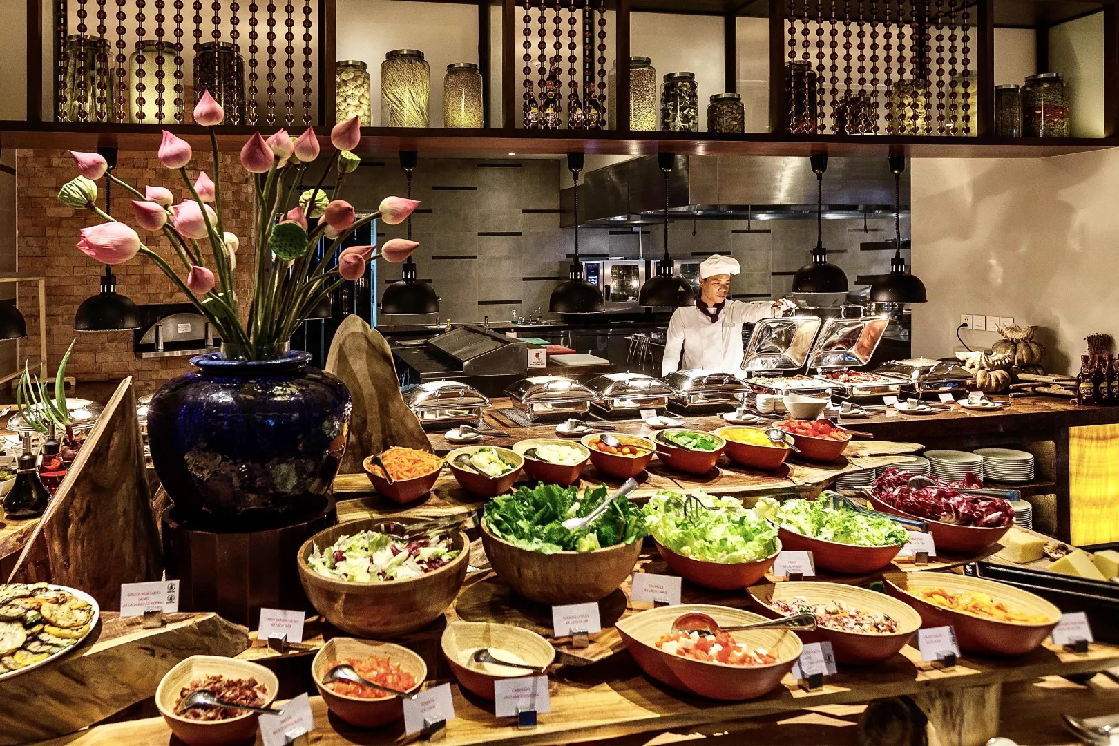 V rezorte sú raňajky podávané v hlavnej reštaurácii formou bufetu. Taktiež je dostupná polpenzia, ktorá zahŕňa raňajky a obed alebo večeru (servírované menu).