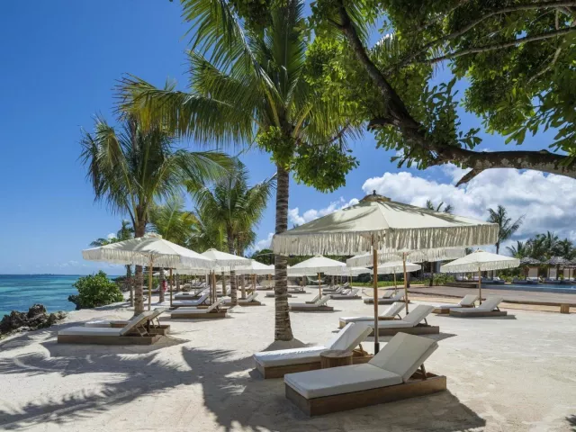 Súkromná pláž s bielym, jemným pieskom je priamo pri hoteli. Lehátka a slnečníky na pláži sú k dispozícii zdarma.