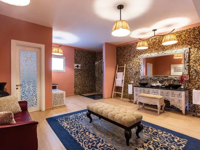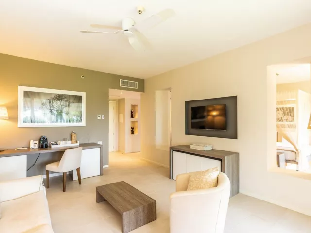 Izby sú dvojlôžkové s výhľadom na okolie a s vlastným sociálnym zariadením (kúpeľňa, WC, fén). Vybavenie zahŕňa telefón, Wi-Fi, SAT/TV, klimatizáciu, minibar (doplňovaný každý deň), trezor, set na prípravu kávy/čaju a ventilátor. Všetky izby majú terasu alebo balkón. Na požiadanie sú k dispozícii aj izby typu junior suite, superior ocean suite alebo jacuzzi suite za príplatok.