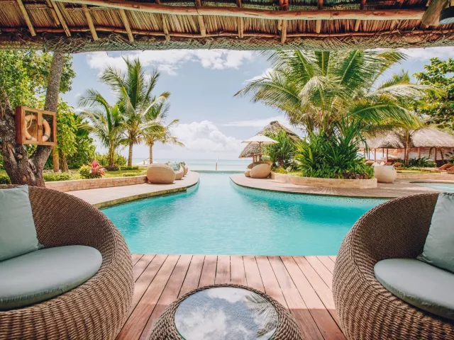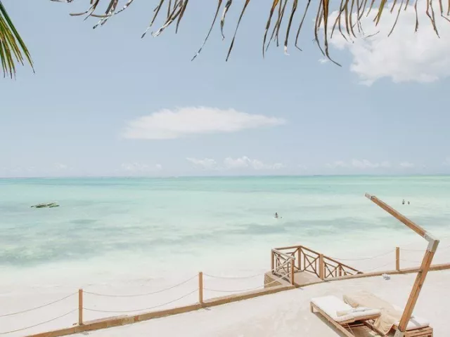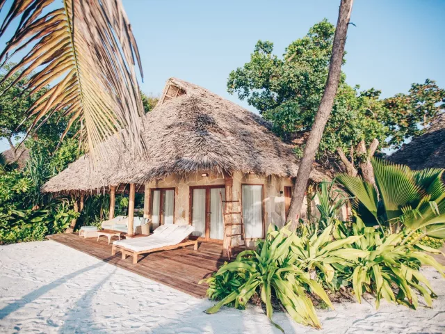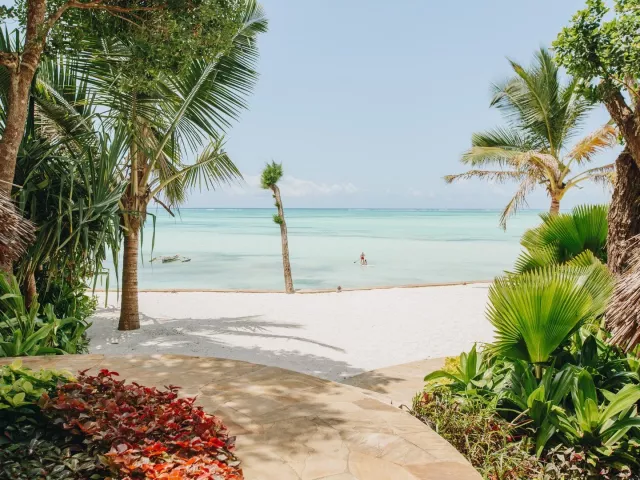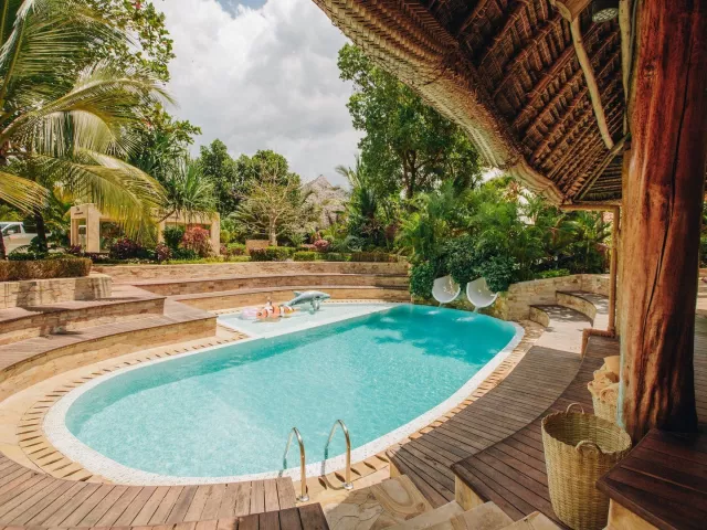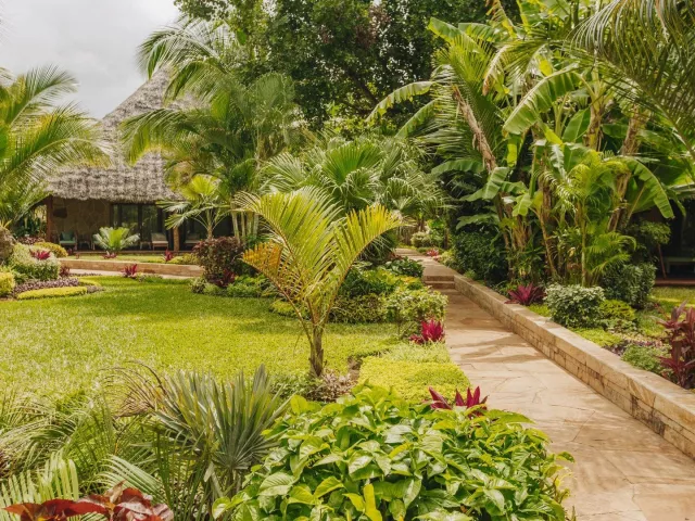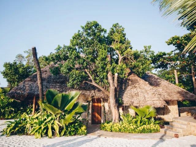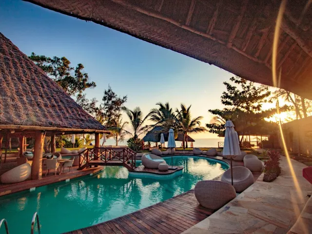 Luxusný hotel, otvorený v roku 2015, sa nachádza priamo na pláži neďaleko dedinky Pongwe, približne 35 km od letiska (asi 1 hodinu cesty).