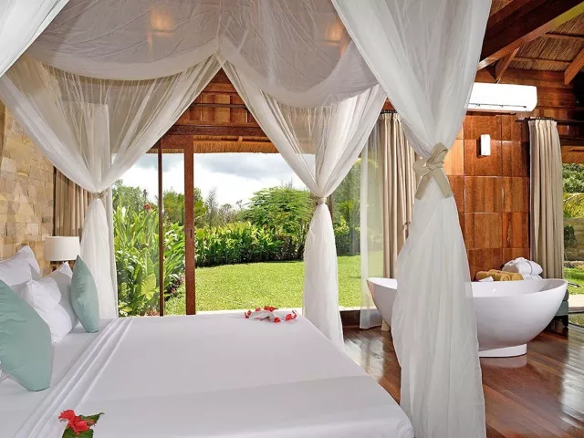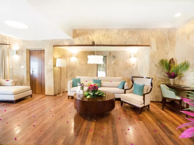 Dvojlôžkové izby Deluxe Garden Bungalow s možnosťou prístelky majú vlastné príslušenstvo (kúpeľňa, vysúšač vlasov, WC), klimatizáciu, telefón, moskytiéru, trezor, denne doplňovaný minibar, SAT/TV a Wi-Fi zdarma. K dispozícii sú aj balkóny alebo terasy s výhľadom do záhrady. Za príplatok je možnosť izieb s výhľadom na more alebo Royal Garden Villa s vonkajšou jacuzzi a obývacou časťou.