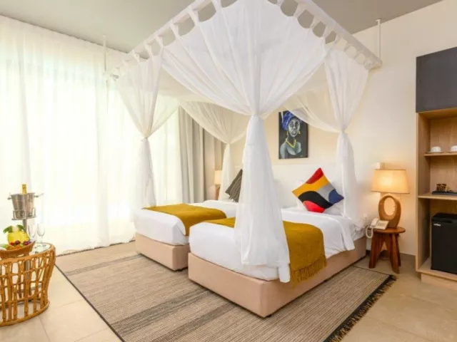 Dvojlôžkové izby Superior s možnosťou prístelky sú vybavené vlastným sociálnym zariadením (kúpeľňa, sušič vlasov, WC), klimatizáciou, SAT/TV, moskytiérou, telefónom, Wi-Fi, setom na prípravu kávy/čaju, mini chladničkou a trezorom. Izby majú balkón alebo terasu s výhľadom do záhrady alebo na bazén. Na vyžiadanie sú k dispozícii izby typu Superior s výhľadom na more, priestrannejšie izby typu Deluxe, ako aj honeymoon suite s privátnym bazénom na terase a royal suite s jacuzzi.